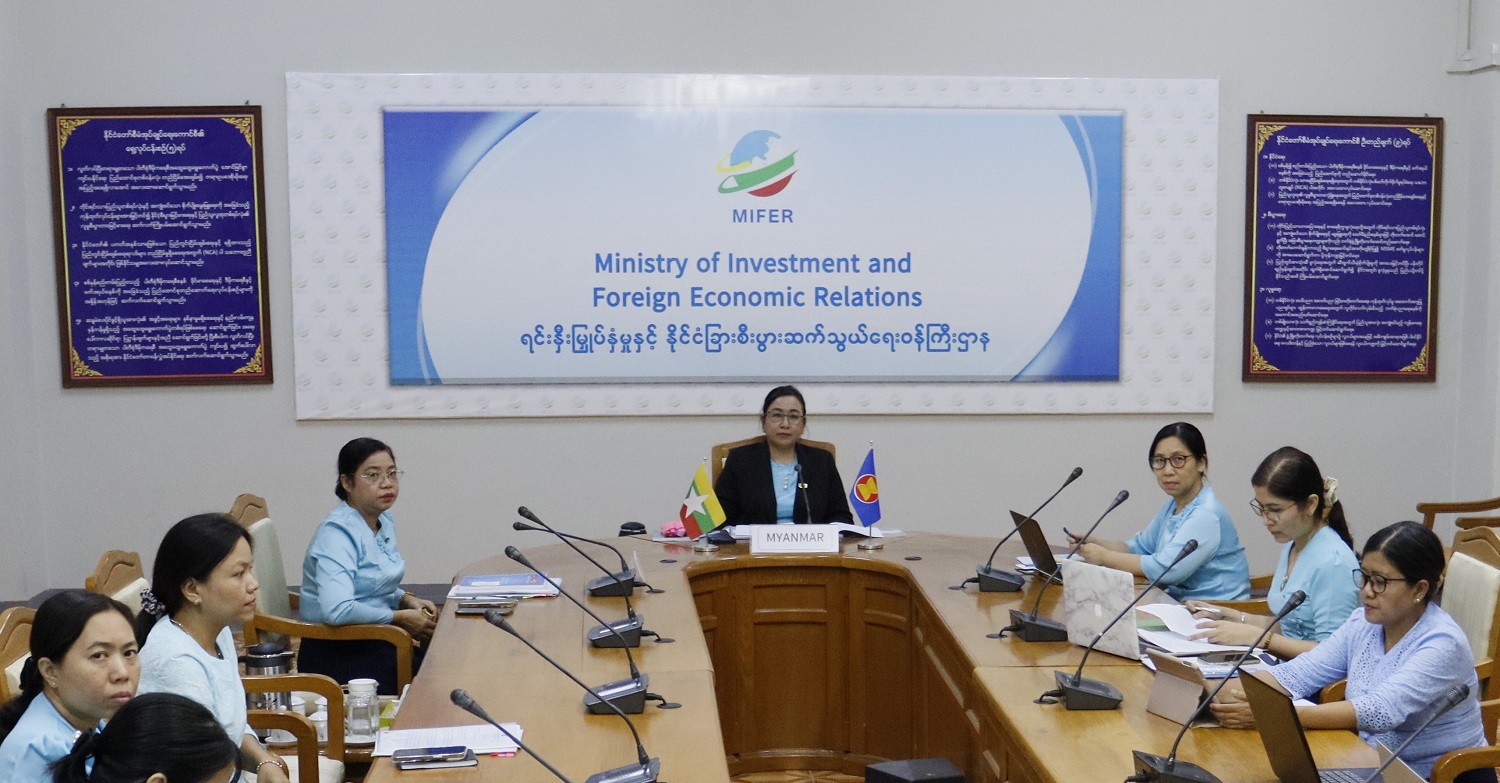 Myanmar delegation, led by Deputy Minister for Investment and Foreign Economic Relations, Dr. Wah Wah Maung, Myanmar's Lead of the ASEAN Geoeconomics Task Force, attends the inaugural meeting of ASEAN Geoeconomics Task Force which was held virtually on 16th May, 2025.