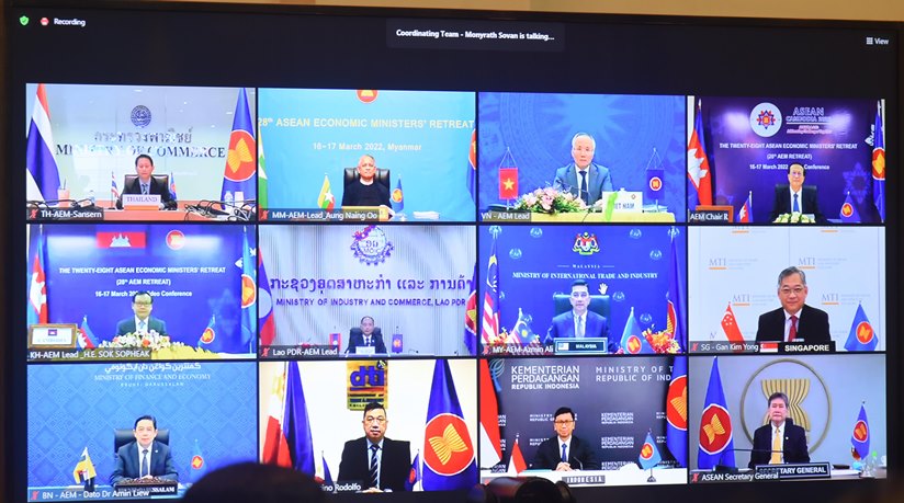 Union Minister for Investment and Foreign Economic Relations U Aung Naing Oo participated at the 28th ASEAN Economic Ministers’ Retreat Meeting which was virtually held on 16th March 2022.