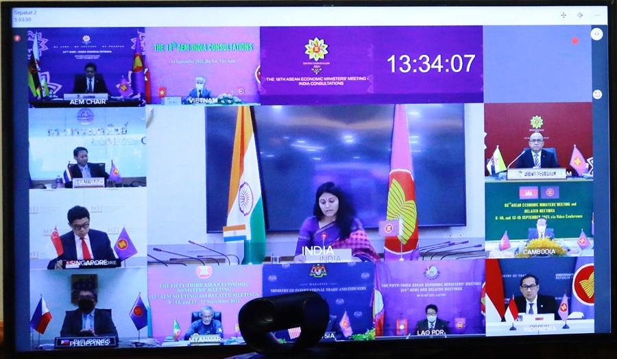 18th AEM-India Consultations was also held in the afternoon. At the Meeting, H.E. Anupriya Patel, Minister of Commerce and Industry of India and ASEAN Economic Ministers discussed the cooperation activities to response the economic impact of the Covid-19 pandemic, the issues raised by the ASEAN-India Business Council and the progress of the implementation of the ASEAN-India FTA.