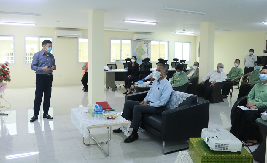 After that, Union Minister also visited the Resources Group Logistic Co., Ltd operating dry port services under the permission of Myanmar Investment Commission in Yangon Region, Ywar Thar Gyi. At the place of the investment, the executives of the company made a presentation about the situations of operating dry port services by utilizing Yangon-Mandalay railroad, providing warehouse services, exporting and handling the cargo, operating customs clearance services by using bonded warehouse system. The Union Minister discussed and made suggestions to promote the investment activities of the company.
