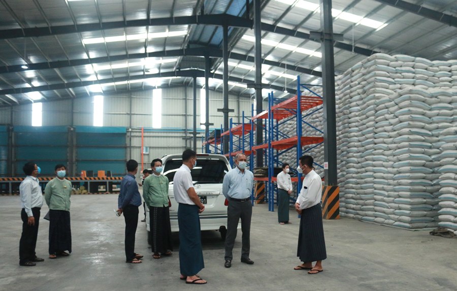Union Minister for Ministry of Investment and Foreign Economic Relations, U Aung Naing Oo visited the Shwe Me logistic service Co., Ltd operating under the permission of Myanmar Investment Commission in Yangon Region, Shwe Pyi Thar Industrial Zone. The responsible personnel from the industry greeted the team led by Union Minister and explained about the operational procedures, transportation processes of containers through Hlaing River to Thilawa port and other local ports, current situation on rice export to foreign countries. The Union Minister coordinated and supported the needs of the industry for the expansion of the investment