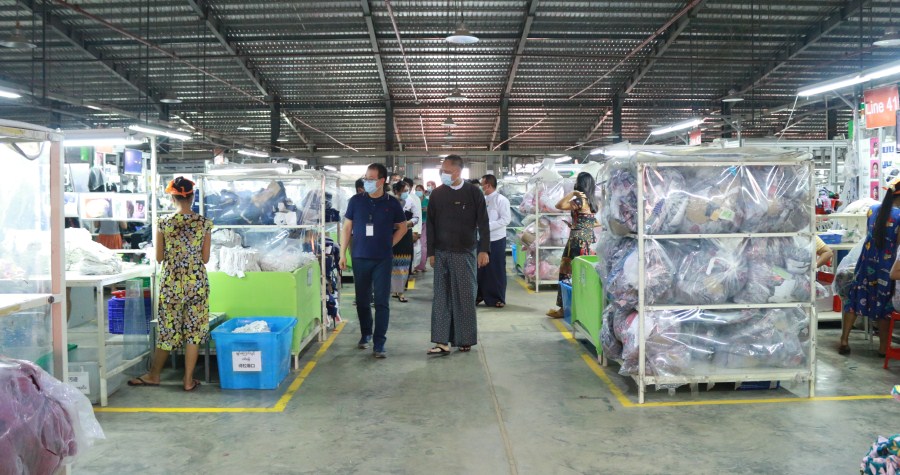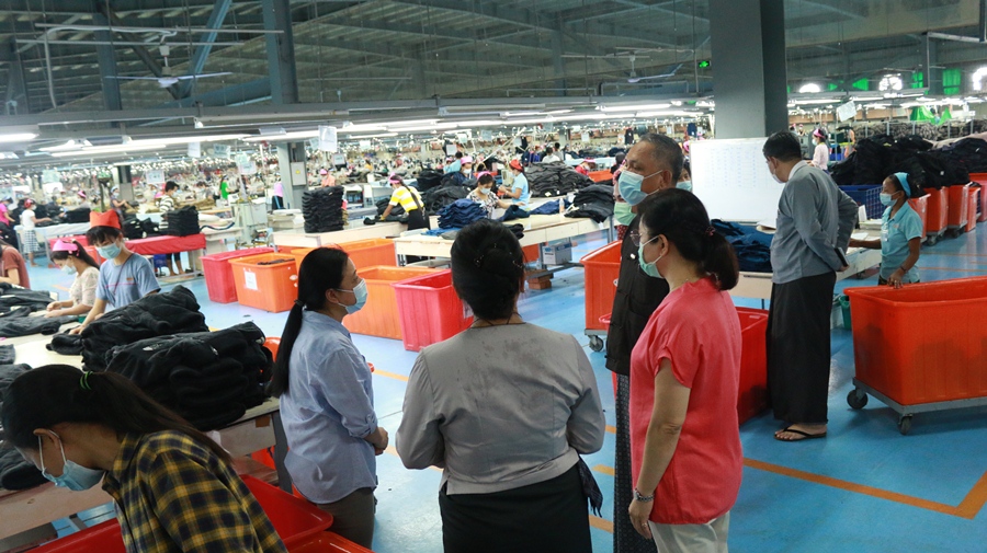 The Union Minister and party then visited the garment factory of Karisma Apparel (Myanmar) Co., Ltd, Sleeping Bag production factory under the CMP system of Bellmart (Myanmar) Co., Ltd. It Implemented an industrial park i-Land Park Myanmar Limited in Baw Nat Gyi Village-tract.