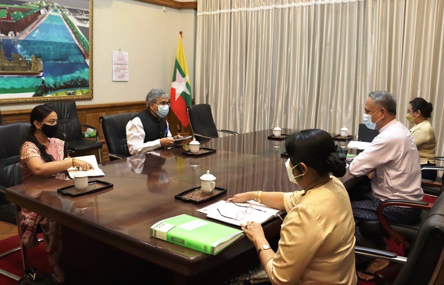 ရင်းနှီးမြှုပ်နှံမှုနှင့် နိုင်ငံခြားစီးပွားဆက်သွယ်ရေး ဝန်ကြီးဌာန၊ ပြည်ထောင်စုဝန်ကြီး ဦးအောင်နိုင်ဦးသည် ယနေ့မွန်းလွဲပိုင်းတွင် မြန်မာနိုင်ငံဆိုင်ရာ အိန္ဒိယနိုင်ငံ သံအမတ်ကြီး H.E. Mr. Saurabh Kumar နှင့်အဖွဲ့အား အဆိုပါဝန်ကြီးရုံး ဧည့်ခန်းမနှင့် လက်ခံတွေ့ဆုံ သည်။ ထိုသို့တွေ့ဆုံရာတွင် နှစ်နိုင်ငံအကြား စီးပွားဆက်သွယ်ရေး နှင့်စပ်လျဉ်း၍ ပူးပေါင်းဆောင်ရွက်ရန် ကိစ္စရပ်များကို ရင်းနှီးပွင့်လင်းစွာ အပြန်အလှန်ဆွေးနွေးခဲ့ကြသည်။