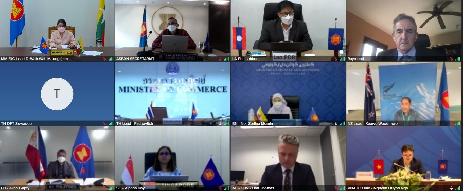 (၁၄) ကြိမ်မြောက် အာဆီယံ-ဩစတြေးလျ၊ နယူးဇီလန် လွတ်လပ်သော ကုန်သွယ်မှုဒေသ ပူးတွဲကော်မတီ၏ အာဆီယံသီးသန့်အစည်းအဝေးကိုလည်း ၂၀၂၁ ခုနှစ် နိုဝင်ဘာလ ၂၅ ရက်နေ့တွင် ကျင်းပပြုလုပ်ခဲ့ပါသည်။ အာဆီယံ-ဩစတြေးလျ၊ နယူးဇီလန် လွတ်လပ်သော ကုန်သွယ်မှု သဘောတူစာချုပ်ကို ၂၀၀၉ ခုနှစ်တွင် စီးပွားရေးဝန်ကြီးများက လက်မှတ်ရေးထိုး ခဲ့ပါသည်။ လက်ရှိတွင် စာချုပ်ဝင်နိုင်ငံများအကြား အဆိုပါ သဘောတူစာချုပ် အဆင့်မြှင့်တင်ခြင်း ဆိုင်ရာ ဆွေးနွေးမှုများကို ဆောင်ရွက်လျက်ရှိပြီး ၂၀၂၂ ခုနှစ် စက်တင်ဘာလ မတိုင်မီ အပြီးသတ် ညှိနှိုင်းသွား မည်ဖြစ်ပါသည်။