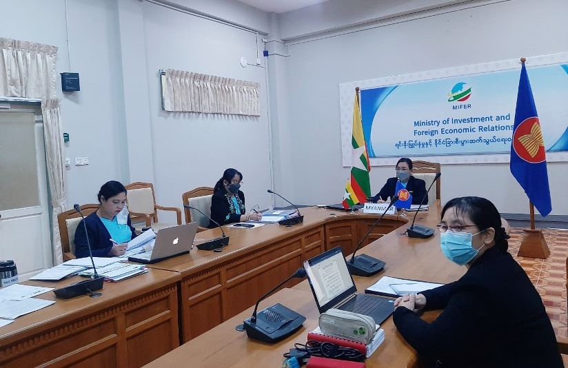 ရင်းနှီးမြှုပ်နှံမှုနှင့် နိုင်ငံခြားစီးပွားဆက်သွယ်ရေးဝန်ကြီးဌာန၊ အမြဲတမ်းအတွင်းဝန်၊ မြန်မာနိုင်ငံ၏ ဒေသတွင်း ဘက်စုံစီးပွားရေး ပူးပေါင်းဆောင်ရွက်မှု ကြားဖြတ်ပူးတွဲ ကော်မတီ ခေါင်းဆောင်ဖြစ်သူ ဒေါက်တာဝါဝါမောင်သည် ယနေ့နံနက် ၀၈:၃၀ နာရီမှ စတင်၍ Video Conferencing စနစ်ဖြင့် ကျင်းပသည့် ဒေသတွင်း ဘက်စုံစီးပွားရေး ပူးပေါင်းဆောင်ရွက်မှု (RCEP) ကြားဖြတ်ပူးတွဲ ကော်မတီ၏ စတုတ္ထအကြိမ်မြောက် အစည်းအဝေးသို့ ရင်းနှီးမြှုပ်နှံမှုနှင့် နိုင်ငံခြားစီးပွားဆက်သွယ်ရေးဝန်ကြီးဌာန၊ ရုံးအမှတ် (၁) မှ ပါဝင်တက်ရောက်သည်။