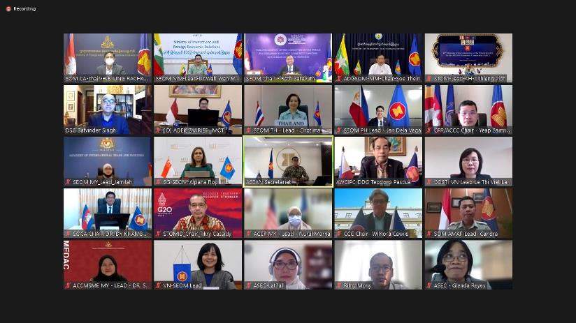 အစည်းအဝေးတွင် အာဆီယံအဆင့်မြင့်အစည်းအဝေးများမှ ဆက်လက်ဆောင်ရွက်ရန် ရှိသည့်ကိစ္စရပ်များ၊ အာဆီယံအသိုက်အဝန်း ကော်မတီများ၏ ဖွဲ့စည်းပုံ ၊ လုပ်ထုံးလုပ်နည်းများ နှင့် ရှေ့ဆက်ဆောင်ရွက်မည့် ကိစ္စရပ်များ၊ ကဏ္ဍများနှင့် မဏ္ဍိုင်များအကြား ပေါင်းစပ် ဆက်နွယ် နေသည့်ကိစ္စရပ်များ၊ အာဆီယံပေါင်းစပ်ဆက်နွယ်မှု ပူးပေါင်းညှိနှိုင်းရေး ကော်မတီနှင့် အာဆီယံ စီးပွားရေးအကြံပေးကောင်စီအပါအဝင် အာဆီယံအသိုက်အဝန်းမဏ္ဍိုင်(၃) ခုအောက်ရှိ ကဏ္ဍ အလိုက်လုပ်ငန်းအဖွဲ့များက ၄င်းတို့၏ ၂၀၂၂ ခုနှစ်အတွင်း ဦးစားပေးဆောင်ရွက်မည့် လုပ်ငန်း များနှင့် စပ်လျဉ်းသည့် တင်ပြချက်များကို ဆွေးနွေးခဲ့သည်။