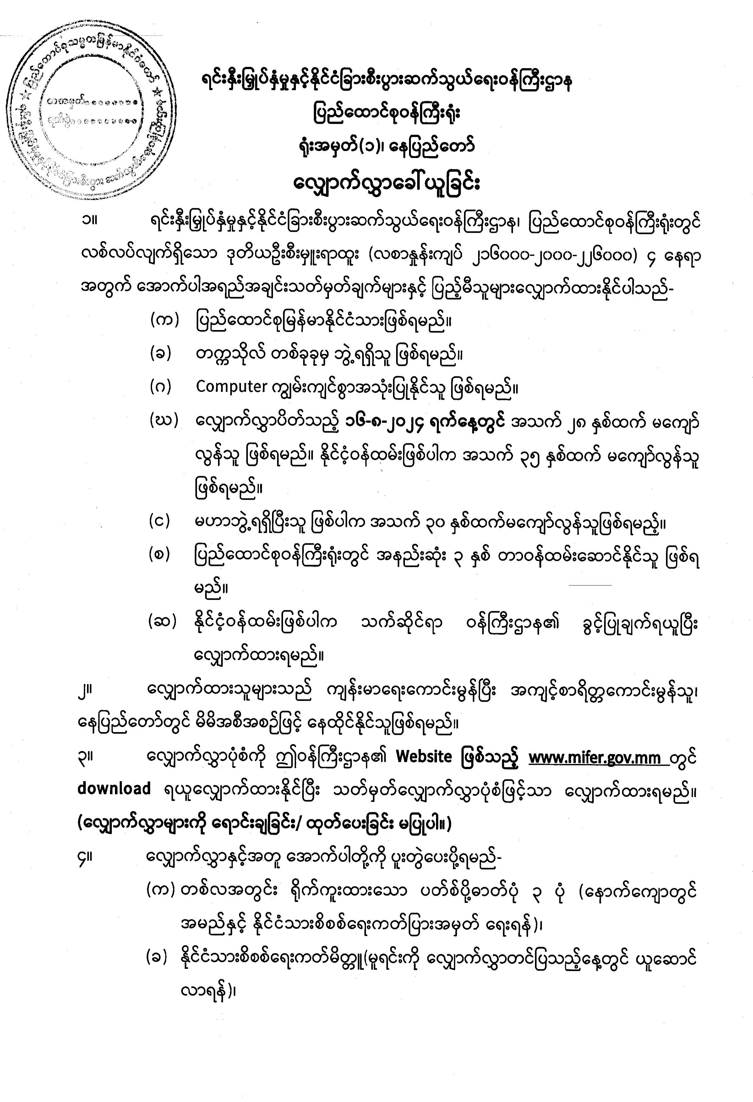 ရင်းနှီးမြှုပ်နှံမှုနှင့် နိုင်ငံခြားစီးပွားဆက်သွယ်ရေးဝန်ကြီးဌာန ပြည်ထောင်စုဝန်က... Post on 10 June 2025