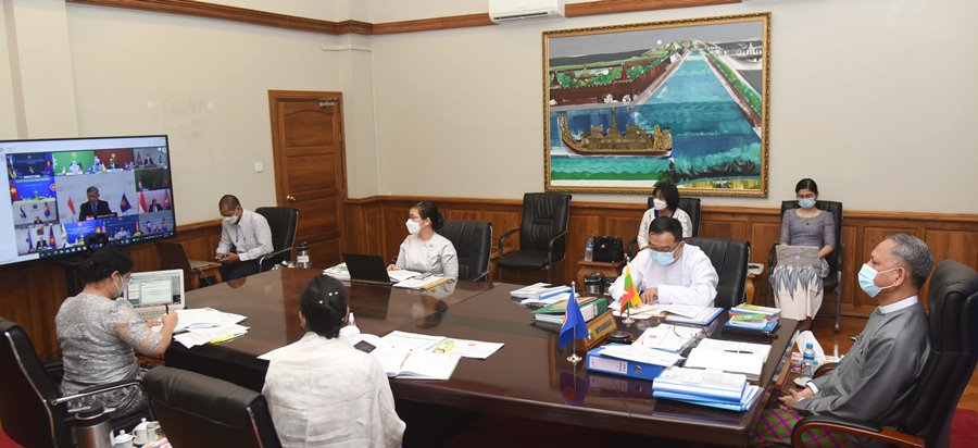 အဆိုပါအစည်းအဝေးတွင် ပြည်ထောင်စုဝန်ကြီးကမြန်မာနိုင်ငံတွင် ကိုဗစ်-၁၉ ကပ်ရောဂါ ကာကွယ်ခြင်းနှင့် ကုသရေးလုပ်ငန်းများ၌ အစိုးရ-ပုဂ္ဂလိက နီးကပ်စွာ ပူးပေါင်းဆောင်ရွက်မှုများ၊ ကူးစက်မှုနှုန်းကို အတိုင်းအတာတစ်ခုအထိ အောင်မြင်စွာ ထိန်းချုပ်ဆောင်ရွက်နိုင်ခဲ့သည့် အခြေအနေများ၊ ကိုဗစ်-၁၉ ကြောင့် ဖြစ်ပေါ်လာသည့် စီးပွားရေးသက်ရောက်မှုများကို ကုစားနိုင်ရန်အတွက် ကာလလတ်စီမံကိန်းဖြစ်သည့် မြန်မာနိုင်ငံ စီးပွားရေးပြန်လည် ဦးမော့စေ ရေး စီမံချက်ကို ကုလသမဂ္ဂ၏ ထောင်စုနှစ်ရည်မှန်းချက်၊ အာဆီယံဘက်စုံပြန်လည်ထူထောင်ရေး မူဘောင် နှင့် ဂျီအမ်အက်စ် လုပ်ငန်းအစီအစဉ်များနှင့်အညီ ဆောင်ရွက်နေမှုများကို ရှင်းလင်း ပြောကြားခဲ့သည်။