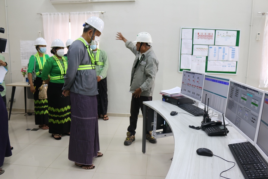 နေ့လယ်ပိုင်းတွင် ပြည်ထောင်စုဝန်ကြီးသည် မင်းဘူးခရိုင်၊ မင်းဘူး(စကု)မြို့နယ်၊ မင်းလှ ကျင်းကျေးရွာအုပ်စုရှိ နိုင်ငံခြားရင်းနှီးမြှုပ်နှံမှုလုပ်ငန်းဖြစ်သော GEP (Myanmar) Co.,Ltd ၏ နေရောင်ခြည်စွမ်းအင်သုံး လျှပ်စစ်ဓါတ်အား ထုတ်လုပ်မှု လုပ်ငန်းသို့ ရောက်ရှိခဲ့ရာ ကုမ္ပဏီ၏ အထွေထွေမန်နေဂျာ ဦးထက်နိုင်အောင်က စီမံကိန်းလုပ်ငန်းနှင့် စပ်လျဉ်း၍ ရှင်းလင်း ပြောကြားခဲ့ပါသည်။ ရှင်းလင်းပြောကြားရာတွင် ယခုစီမံကိန်းသည် မြန်မာနိုင်ငံ၏ ပထမဆုံးနှင့် အကြီးမားဆုံး နေရောင်ခြည်စွမ်းအင်သုံး လျှပ်စစ်ဓါတ်အားထုတ်လုပ်သည့် လုပ်ငန်းတစ်ခု ဖြစ်ကြောင်း၊ စီမံကိန်းတစ်ခုလုံးကို အပိုင်း (၄)ပိုင်း ခွဲခြားထားပြီး တည်ဆောက် ပြီးစီးမှုကာလမှာ (၄)နှစ် လျာထားကြောင်း၊ စီမံကိန်း၏ အပိုင်း ၁ ကို ၂၀၁၈ ခုနှစ်တွင် စတင်တည်ဆောက်ခဲ့ရာ ၂၀၁၉ ခုနှစ်တွင် လုပ်ငန်းစတင်လည်ပတ်နိုင်ခဲ့ပြီး နေ့စဉ်လျှပ်စစ်ဓါတ်အား မီဂါဝပ် ၄၀ ထုတ်လုပ်ပေးလျက်ရှိပါကြောင်း၊ ကျန်စီမံကိန်း အပိုင်းများကို ဆက်လက်တည်ဆောက်ရေး ဆောင်ရွက်လျက်ရှိပါကြောင်း၊ စီံမံကိန်းတစ်ခုလုံးပြီးစီးပါက မကွေးတိုင်းဒေသကြီးနှင့် ရခိုင် ပြည်နယ်တို့သို့ လျှပ်စစ်မီးအလုံအလောက်ဖြန့်ဝေပေးနိုင်မည်ဖြစ်ကြောင်းနှင့် တိုင်းဒေသကြီး အတွင်း အလုပ်အကိုင်အခွင့်အလမ်း ၁၀၀၀ ကျော် ရရှိနိုင်မည်ဖြစ်ကြောင်း ရှင်းလင်း တင်ပြပါ သည်။ ပြည်ထောင်စုဝန်ကြီးက စီမံကိန်းဆိုင်ရာ ကိစ္စရပ်များ၊ ရင်းနှီးမြှုပ်နှံမှုဆိုင်ရာ ကိစ္စရပ်များ နှင့် စပ်လျဉ်း၍ သိလိုသည်များကို မေးမြန်းခဲ့ပြီး ကုမ္ပဏီက တင်ပြသည့် အခက်အခဲများကို ညှိနှိုင်းဖြေရှင်း ဆောင်ရွက်ပေးခဲ့ပါသည်။